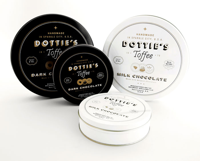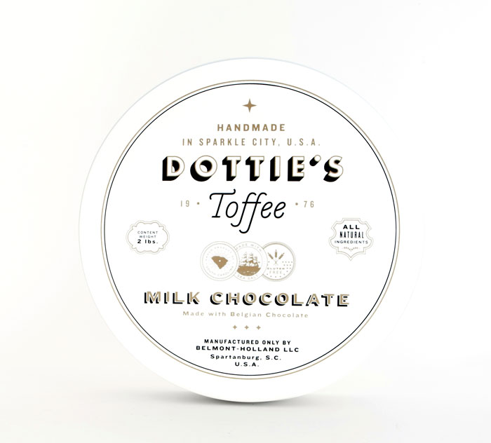 “多蒂的太妃糖是一個慶祝一切熟悉的甜蜜。點開始制作自己的太妃糖1976和她愛她的手藝是會傳染的。她的孫子尼克進行太妃糖制作傳統的這些天,他賣到全國范圍內的零售商。我們創造了一個品牌是甜的,復雜多變的太妃糖本身既懷舊與當代。明亮,過渡色對比的黑色,白色和灰色以及大膽,簡單的文字定義的品牌在包裝,抵押和網站。